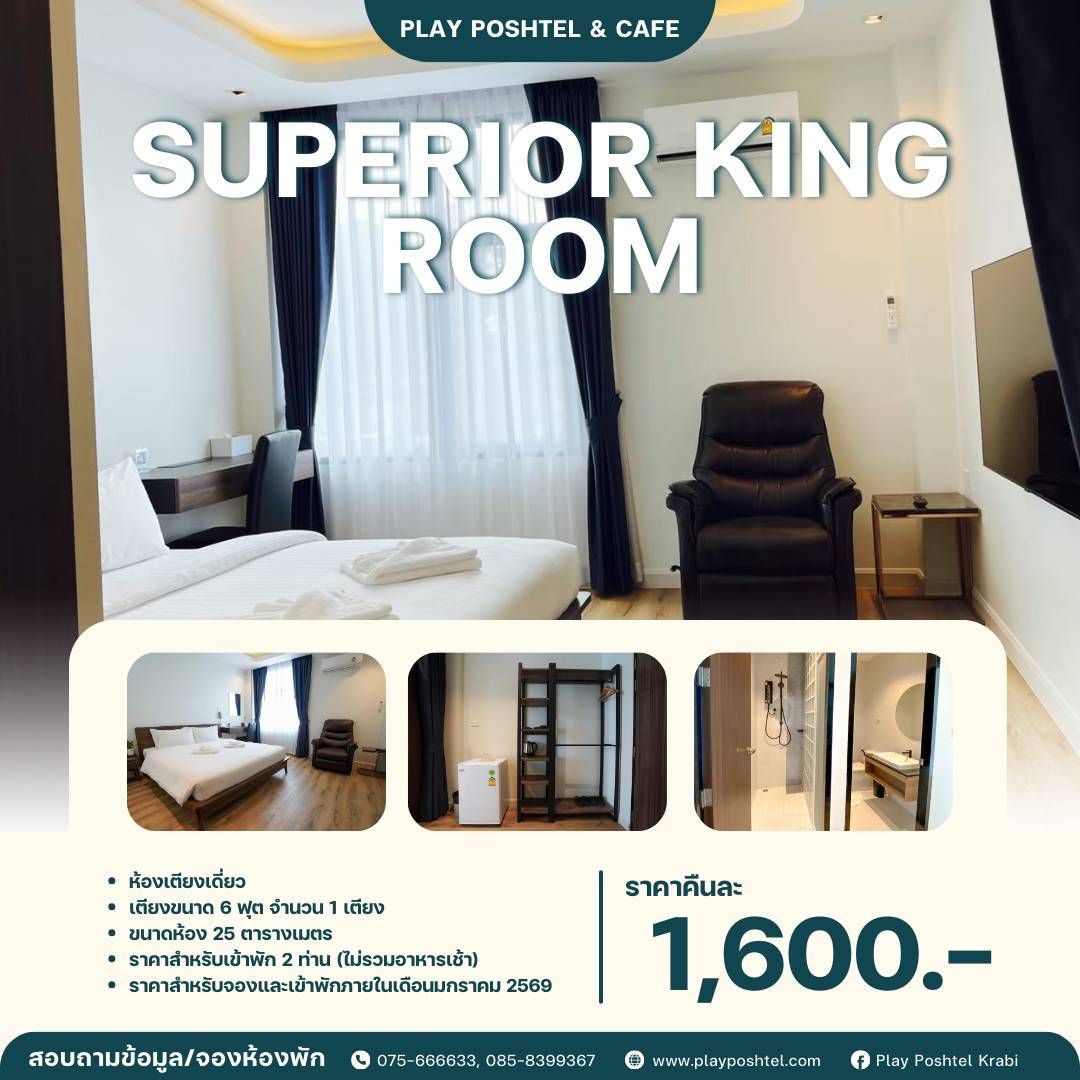 Elevate your stay with the spacious comfort of a Superior King Room. Centered around a luxurious king-sized bed, this room offers more space to stretch out and relax. It's modern simplicity at its most comfortable.