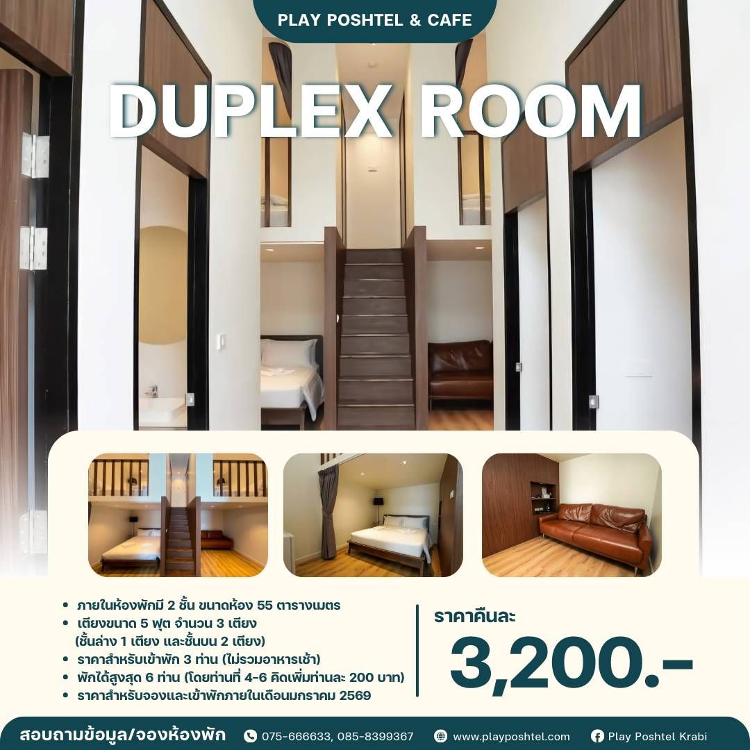Experience a unique sense of space in our two-level Duplex Room. This innovative layout features a stylish living area downstairs and a comfortable, semi-private sleeping loft above, creating a dynamic and modern "home" for your Krabi stay.